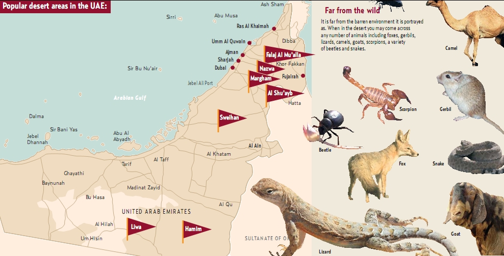 The Dubai desert is very hot during summer and temperature reaches to 50+ degrees some times so summer need extra extra caution. In May 2007, two Ukrainian men were found dead after being lost for 20 hours near Ras Al Khaimah. This is enough warning for the ventures to take special caution for heat in the desert.
